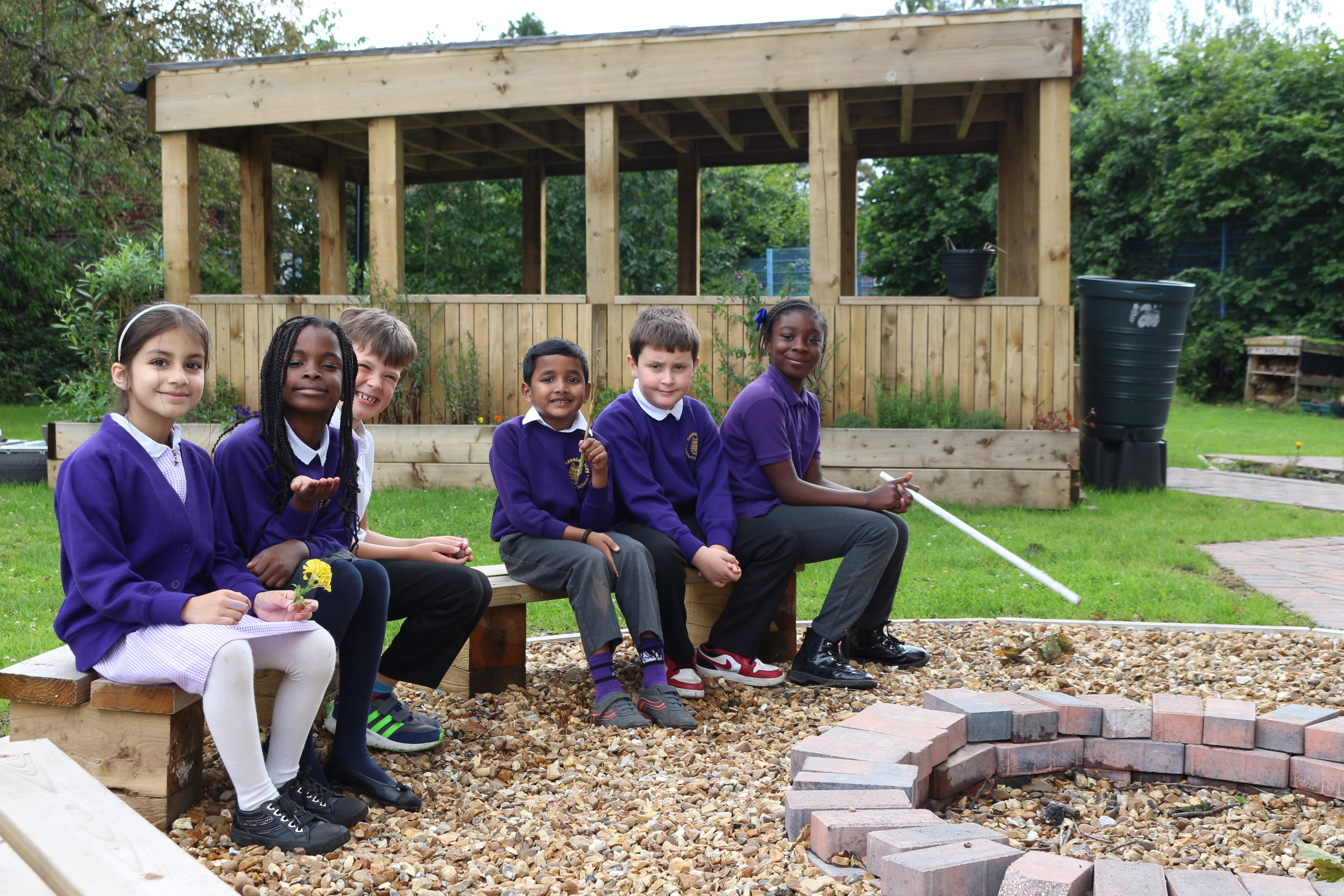 The site has been designed around the five senses with five break-out tables so the children can take part in different activities in smaller groups, as well as a large outdoor shelter for the class to come together and a fire pit.